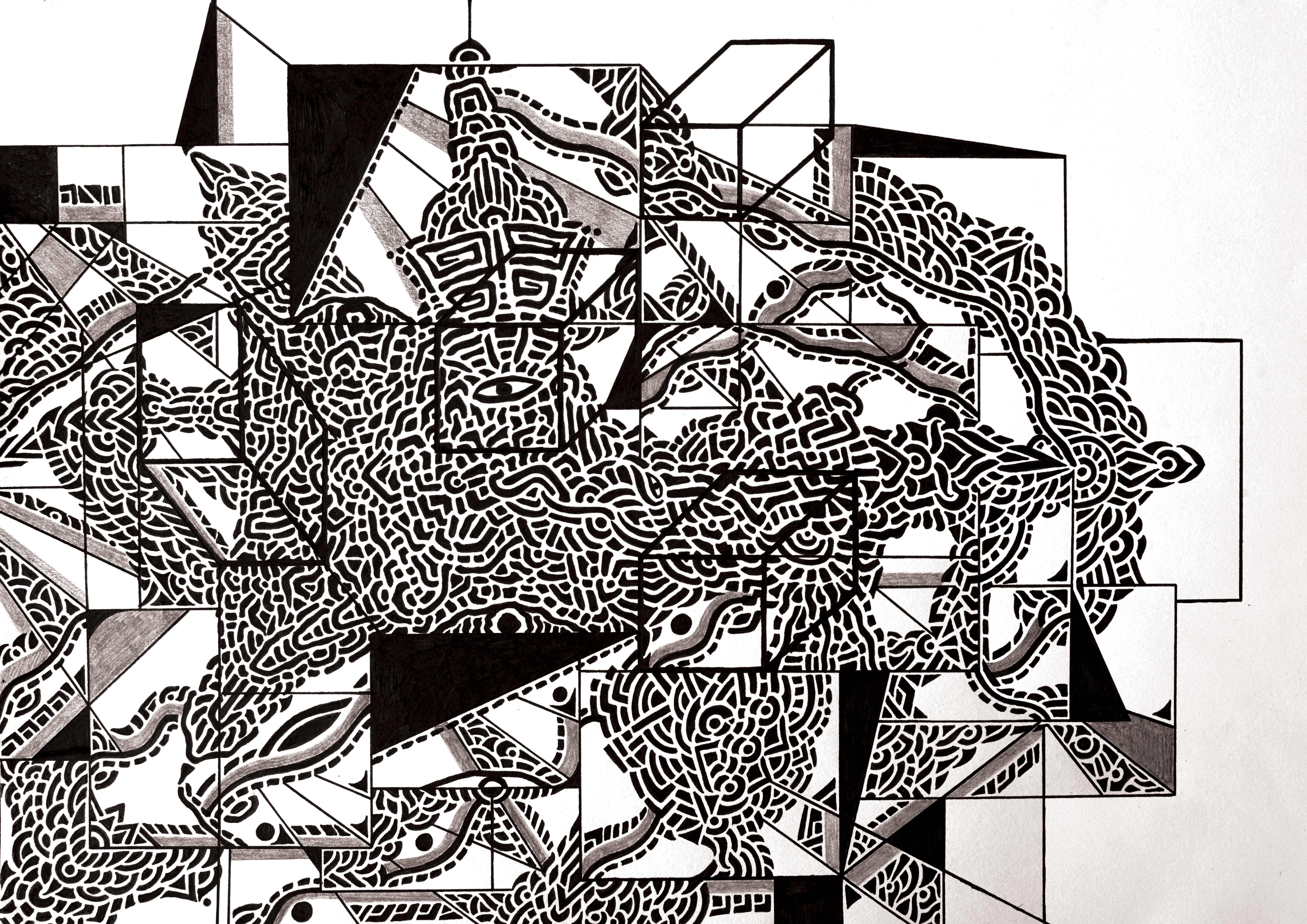 This piece was hand drawn using black fine liners on paper.